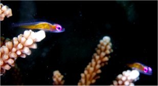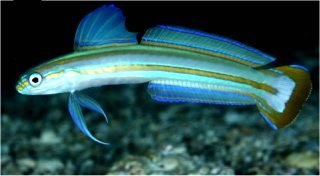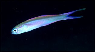 和歌山県以南の太平洋沿岸のサンゴ周辺の礫底、岩礁域に生息します。第1背鰭に暗色帯があること、体は透き通り、腹鰭が癒合していること等が特徴です。