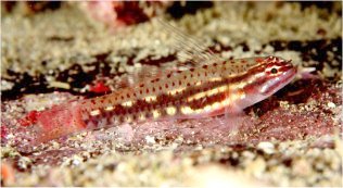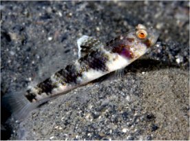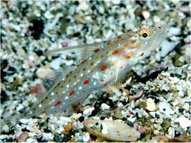 和歌山県では、串本町周辺の沿岸海域の砂底や砂泥底に生息します。吻端から眼、鰓蓋後方にかけて朱色線があり、頬にはうすピンク色の線があり、体側後方に続くことなどが特徴です。改訂に巣穴を掘って生活しています。