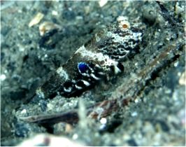和歌山では内湾の砂泥底に生息します。頭部に目立った突起がないこと、腹鰭が大きいこと、鰓孔が大きいことが特徴。海底に沈む空き缶や貝殻に入り込んでいることが多く、ダイバーの被写体としても人気です。