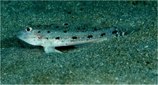 和歌山県では和歌浦湾以南で多く見られますが、詳細な分布域は不明です。沿岸の淡水がしみ出すような砂礫底に潜り込んで生活していると思われます。胸鰭鰭条は8,9本で鰭膜は切れ込み、体色は黄色から黄土色で褐色から暗褐色の斑紋が平面を中心に腹部にかけて広がること、尾鰭基部周辺も黄色から暗褐色であることが特徴です。